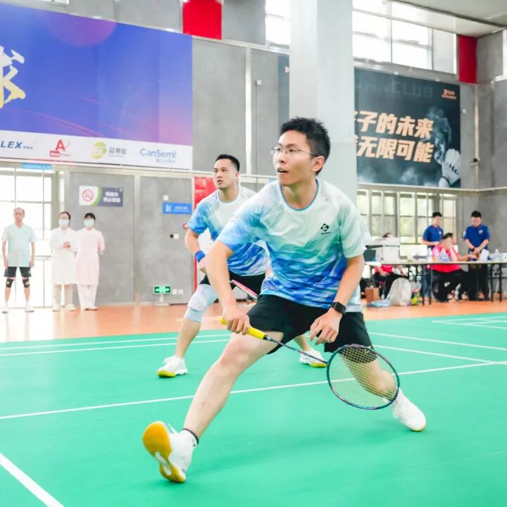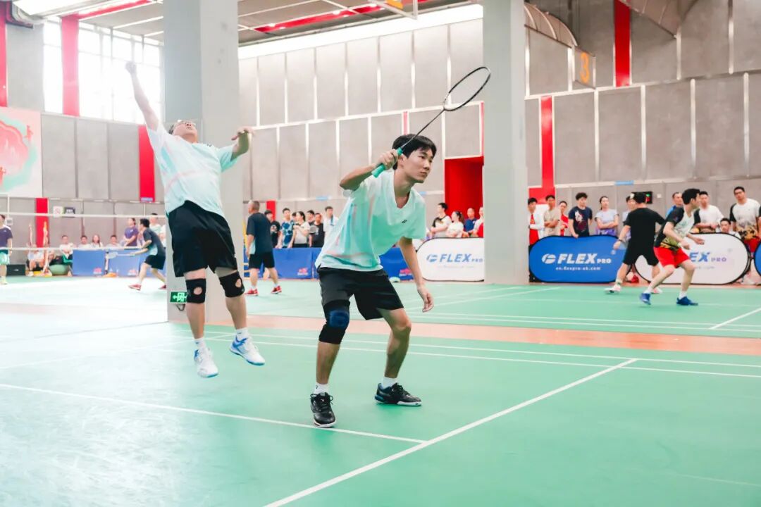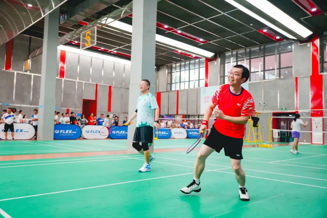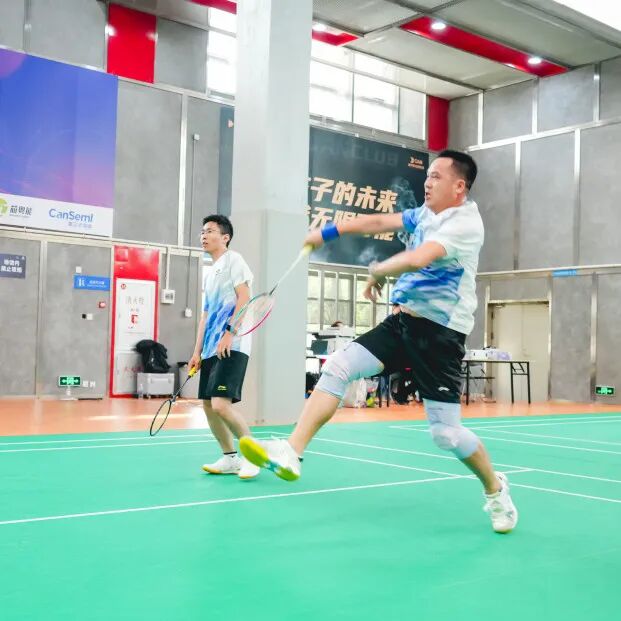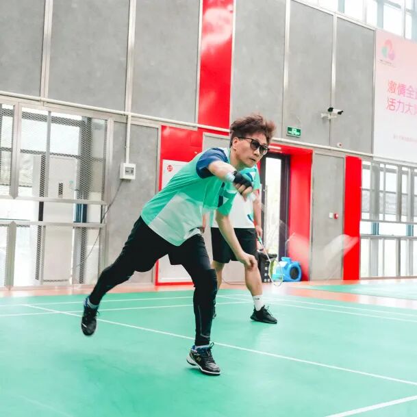 赛场另一侧,别具看点的100+男双表演赛激情开打,几位行业内资深羽毛球爱好者联袂出战,在场上默契配合、巧妙回球,奉献了多个精彩回合。