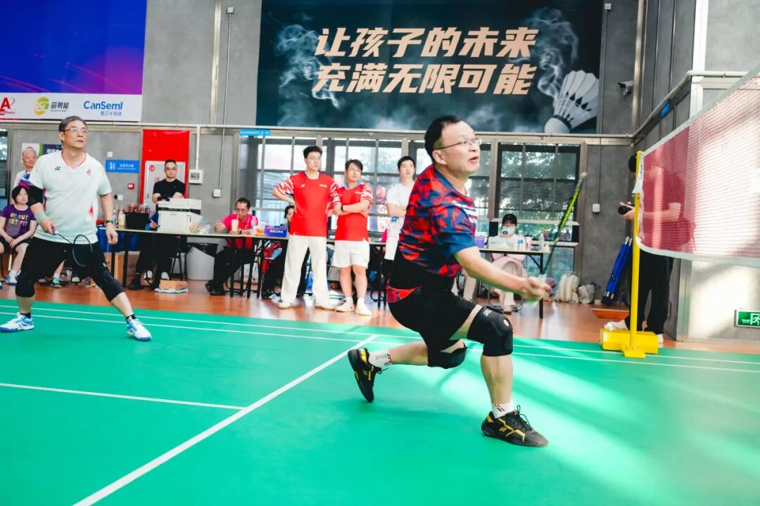 本届赛事除团体赛外,还特别增设了“100+男双表演赛”环节,邀请行业内资深羽毛球爱好者同场竞技,为赛事增添了更多看点。